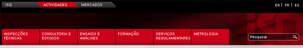 Já está online o novo website do ISQ, uma plataforma de comunicação, de utilização mais apelativa e dinâmica, à distância de um clique. Desenvolvemos este novo site para criar uma relação de maior proximidade com os nossos Clientes, dinamizar a nossa comunicação e facilitar o acesso ao conhecimento das nossas soluções globais e integradas, adaptadas às necessidades de cada Cliente tendo sempre presente o aumento da disponibilidade dos seus activos e contribuindo para a segurança das pessoas, instalações e equipamentos Para tal, criámos 3 áreas principais: Actividades, Mercados e ISQ. Consultando qualquer uma das Actividades que desenvolvemos ou Mercados em que actuamos, acede-se aos serviços que prestamos em cada uma dessas áreas. Actividades Mercados Na área ISQ encontra mais informação sobre nós e a nossa actividade, empresas participadas, onde estamos, em que projectos internacionais de I&D estamos envolvidos, de que laboratórios dispomos, em que áreas somos acreditados, notificados e reconhecidos.